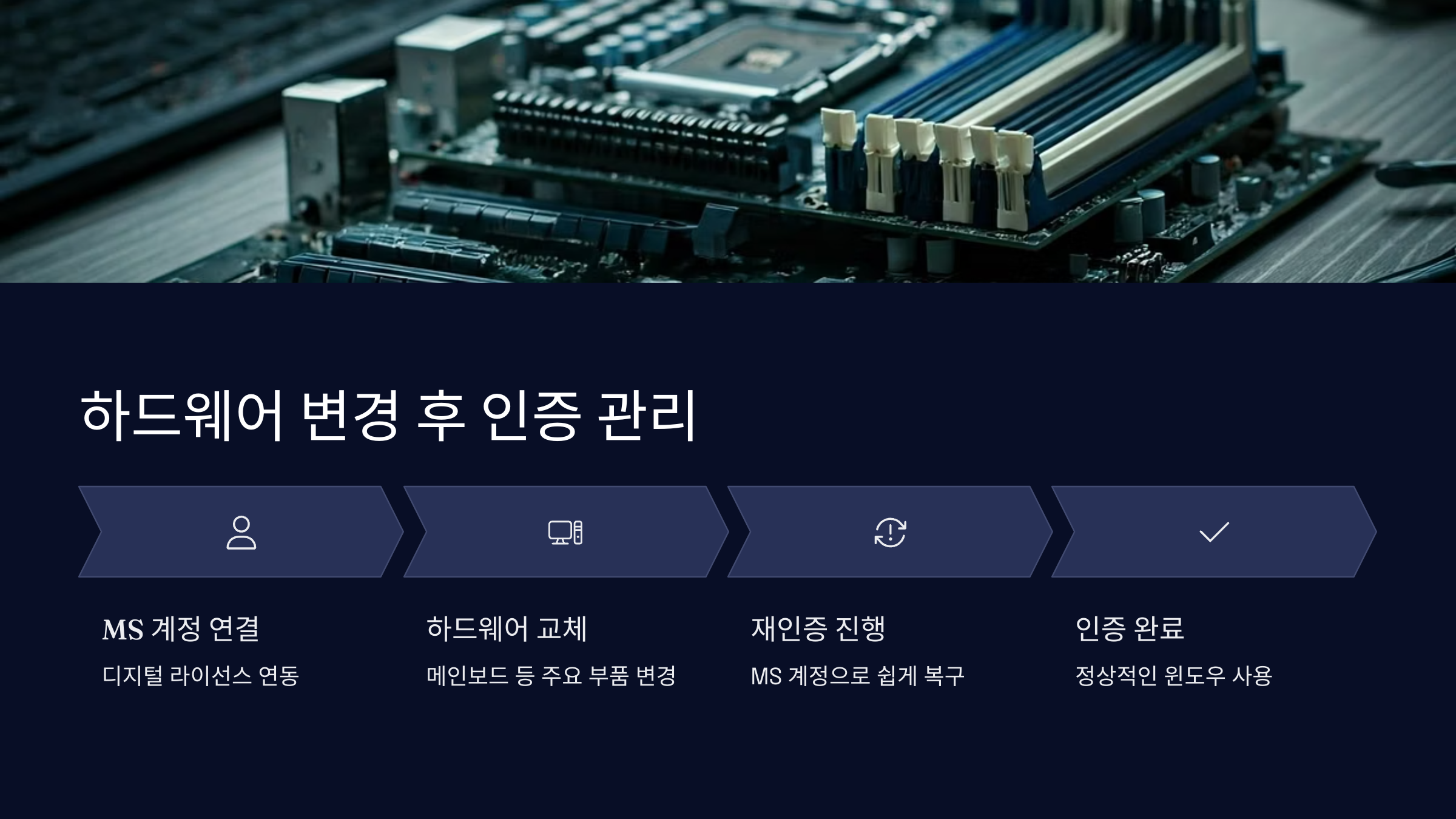 마이크로소프트 계정에 라이선스를 연결해두는 게 제일 좋은 방법이에요. 윈도우 10이나 윈도우 11 같은 최신 버전은 디지털 라이선스라는 개념이 있어서, 여러분의 마이크로소프트 계정에 윈도우 정품 인증 정보를 연결해둘 수 있어요. 이렇게 해두면 나중에 메인보드 같은 주요 하드웨어를 교체하더라도 MS 계정을 통해 쉽게 다시 인증을 받을 수 있죠. 이건 정말 편리한 기능이에요. 다만, PC를 구매할 때 함께 설치되어 있던 OEM 라이선스는 해당 마더보드에 영구적으로 귀속되는 방식이라서, 마더보드를 완전히 교체하면 OEM 라이선스는 더 이상 사용할 수 없게 돼요. 이 경우에는 마이크로소프트 공식 홈페이지나 판매점에서 새로운 정품 라이선스를 구매하셔야 해요.