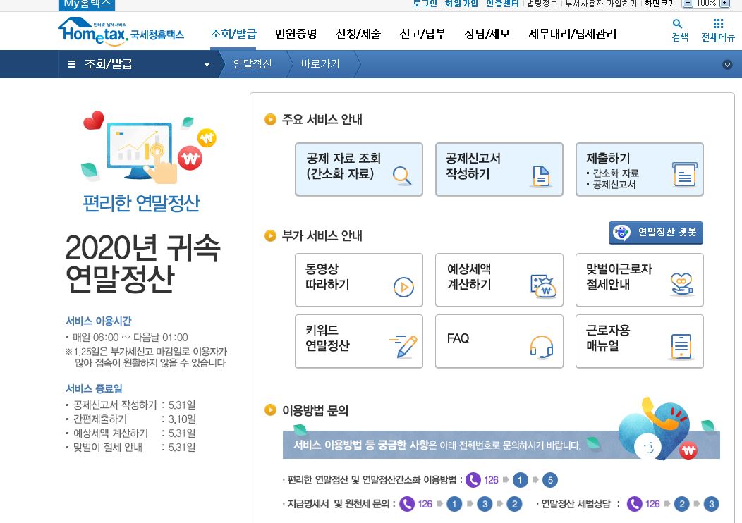 각종 세금 관련한 종합민원 서비스를 제공하는 홈택스인데요. 이런 홈택스의 대표적인 서비스가 바로 종합소득세와 연말정산이라고 할 수 있습니다.