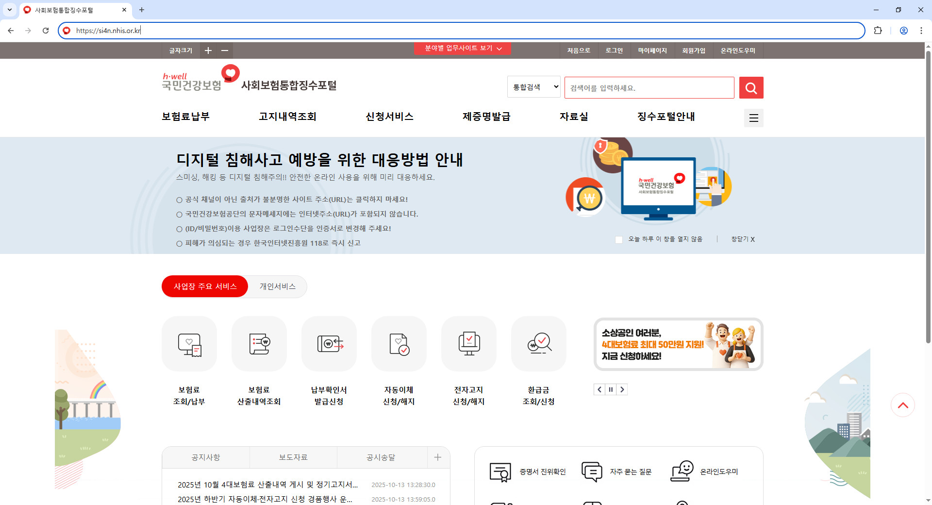 사회보험 통합징수 포털 홈페이지(si4n.nhis.or.kr)